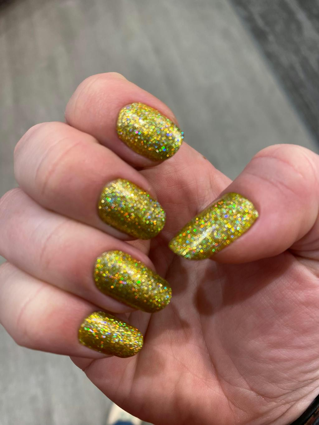 I love this yellow it’s a daffodil color with glitter flacks. I’ll be repurchasing this one.
