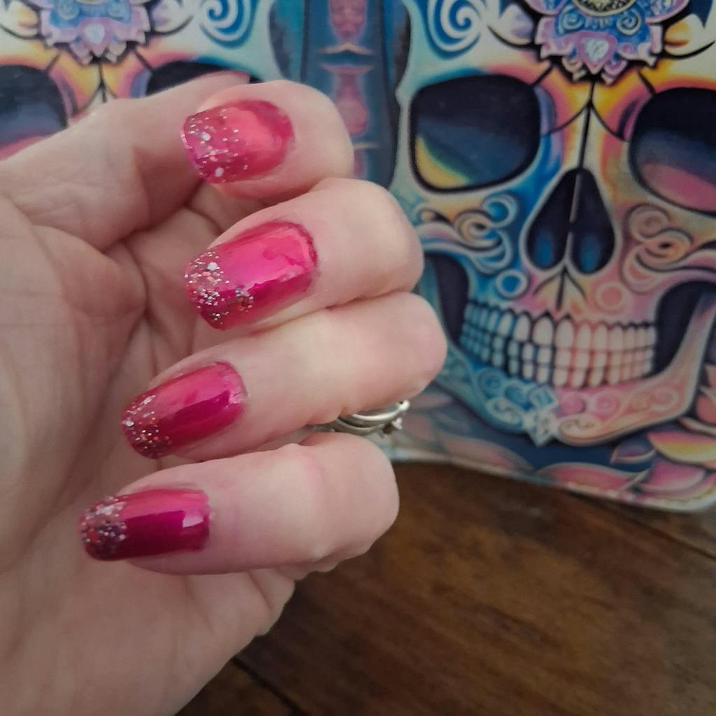 Magic Mushroom is a cool red nail polish filled with pink/red iridescent shimmer