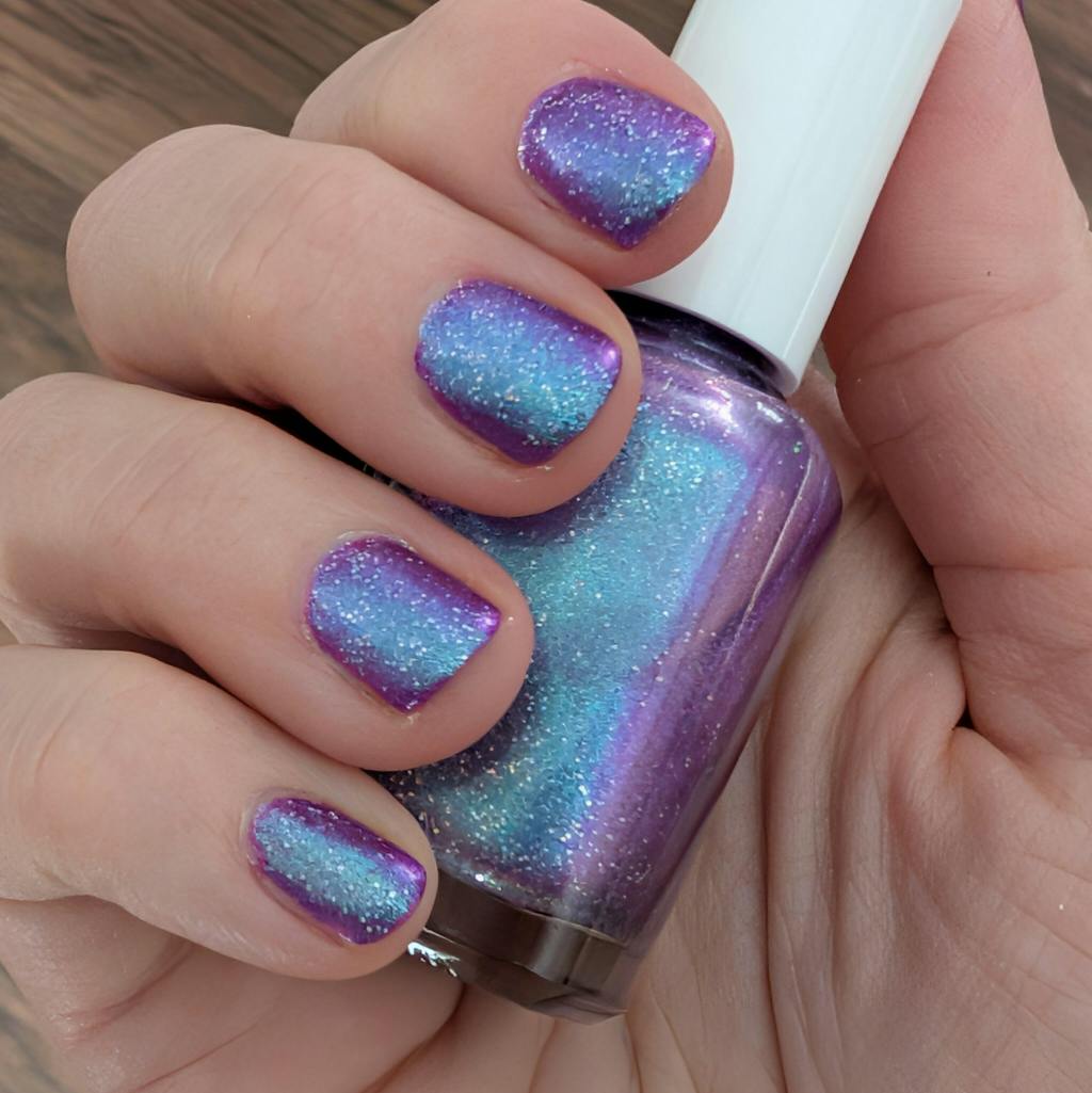 Finish: packed with blue to green aurora shimmer and silver holographic glitter