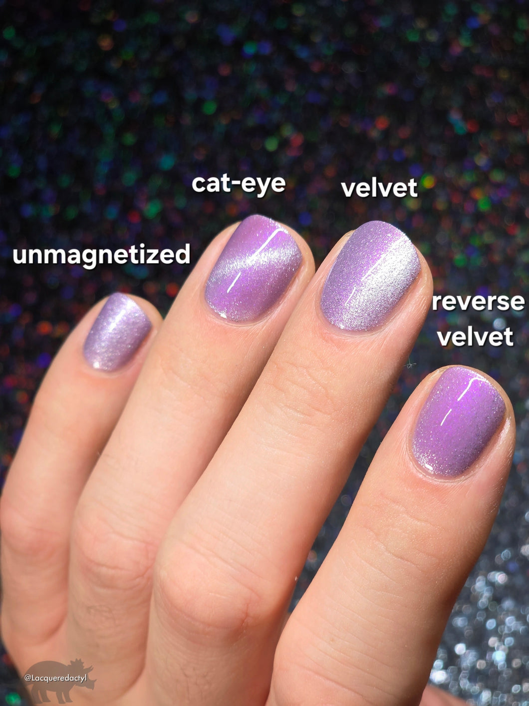 Midnight Chalet is a pastel purple nail polish filled with blue aurora shimmer and silver magnetic pigment.