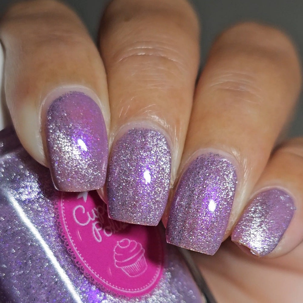 Ingredients: Butyl Acetate, Ethyl Acetate, Nitrocellulose, Acetyl Tributyl Citrate, Isobutyl Acetate, Isopropyl Alcohol, Adipic Acid / Neopentyl Glycol / Trimellitic Anhydride Copolymer, Silica, Styrene / Acrylates Copolymer, N-Butyl Alcohol, Benzophenone-1, D&C Violet #2, Aluminum Powder, Propylene Glycol, Magnesium Fluoride, Mica, Glitter