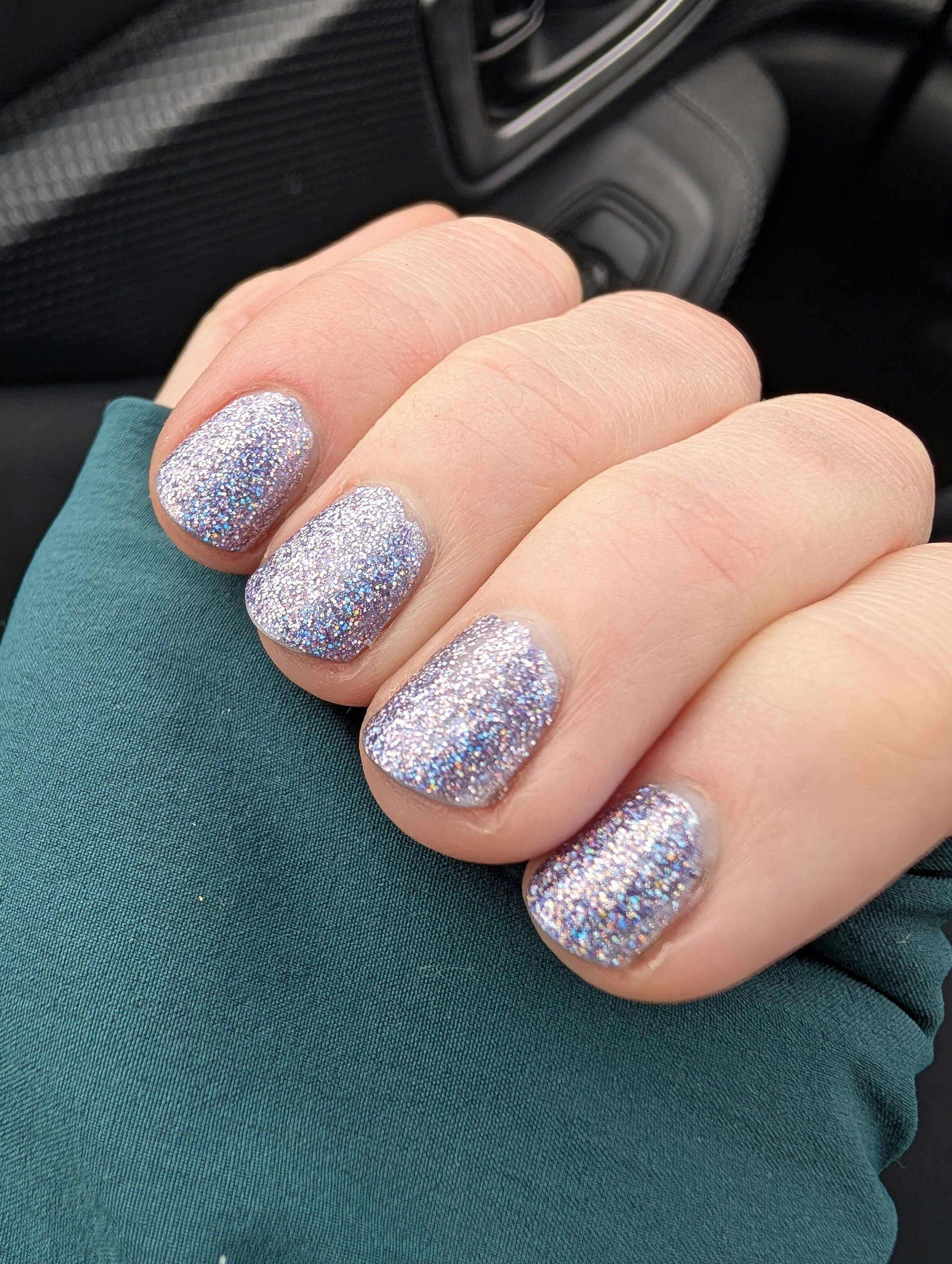 A gorgeous, sparkly lilac glitter polish.